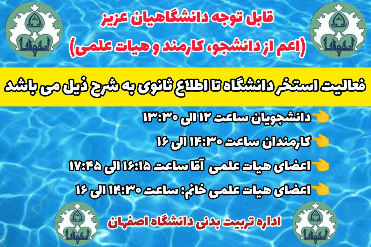 اطلاعیه استخر سرپوشیده دانشگاه اصفهان